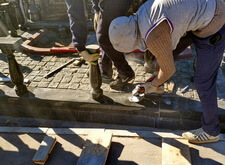 Приступаем к работе с цветниками. Один уже был в наличии, поэтому делаем второй, идентичный. По проекту цветники должны смотреться одинаково даже несмотря на то, что памятники будут разные. В это же время укладываем гранитную брусчатку уже на территорию места захоронения.