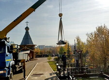 Начинается процесс монтажа. Доставляем памятники, крепим их, приклеиваем и насаживаем на штыри все конструктивные элементы надгробий.